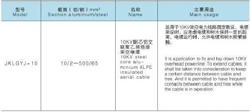 用途本产品适用于交流额定电圧U(Um)为10(12KV)的架空电力线路。适用条件1、电缆导体的*高长期允许工作温度为90℃。2、敷设温度不低于-20℃。3、短路时(*长持续时间不超过5秒)导体的*高温度应不大于250℃。型号规格交货要求1、根据双方的协议以任意长度交货。2、电缆应整齐卷绕在交货盘上,端头应密封良好,露出电缆盘外面的长度应满足测试要求,一只交货盘上只允许卷绕同一型号规格的电缆。3、当双方无协议时,执行GB/T14049-2008标准之规定。